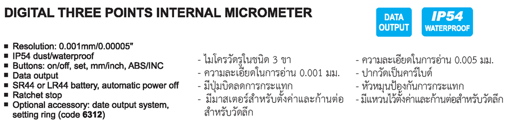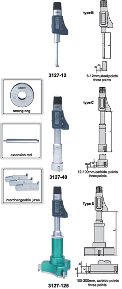 | Code | Range | Micrometers included | Setting ring (included) | Extension rod (included) |